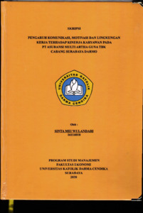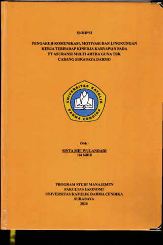 Wulandari, Sinta Mei (2020) Pengaruh Komunikasi,Motivasi dan Lingkungan Kerja Terhadap Kinerja Karyawan pada PT Asuransi Multi Artha Guna TBK Cabang Surabaya Darmo. Undergraduate thesis, Universitas Katolik Darma Cendika Fakultas Ekonomi.