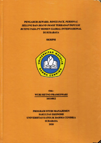 Prameswari, Wuri Retno (2020) Pengaruh Reward,Bonus Pack,Personal Selling dan Brand Image Terhadap Impulse buying pada PT Momen Global internasional di Surabaya. Undergraduate thesis, Universitas Katolik Darma Cendika Fakultas Ekonomi.