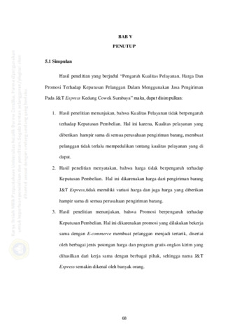 satu penyedia jasa pengiriman barang yang berkompetisi adalah J&T Express. Penelitian ini bertujuan untuk mengetahui pengaruh kualitas pelayanan (X1),