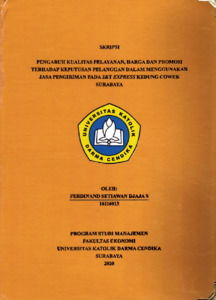 Djaja S, Ferdinand Setiawan (2020) Pengaruh Kualitaas Pelayanan,Harga dan Promosi Terhadap Keputusan Pelanggan Dalam Menggunakan Jasa Pengiriman Pada J&T Express Kedung Cowek Surabaya. Undergraduate thesis, Universitas Katolik Darma Cendika Fakultas Ekonomi.
