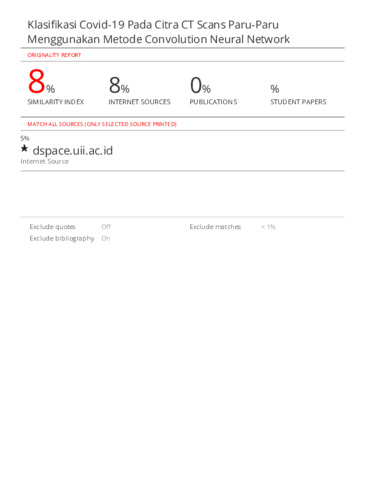 HASIL SIMILARITY-YOSEFINA FINSENSIA RITI-Klasifikasi Covid-19 Pada Citra CT Scans Paru-Paru Menggunakan Metode Convolution.pdf Download (2MB) | Preview |