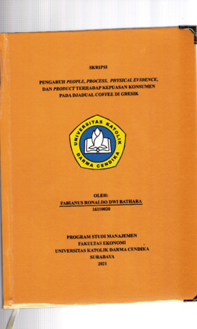 Bathara, Fabianus Ronaldo Dwi (2021) Pengaruh People, Process, Pysical Evidence, Dan Product Terhadap Kepuasan Konsumen pada Djadual Coffee di Gresik. Undergraduate thesis, Universitas Katolik Darma Cendika Fakultas Ekonomi.