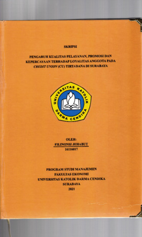 Jehabut, Filinonsi (2021) Pengaruh Kualitas Pelayanan,Promosi dan Kepercayaan Terhadap Loyalitas Angota pada Credit Union (CU) Tirtadana di Surabaya. Undergraduate thesis, Universitas Katolik Darma Cendika Fakultas Ekonomi.