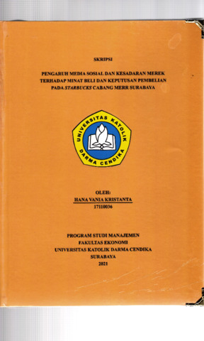 Kristanta, Hana Vania (2021) Pengaruh Media Sosial dan Kesadaran Merek Terhadap Minat Beli dan Keputusan Pembelian pada Starbucks Cabang Merr Surabaya. Undergraduate thesis, Universitas Katolik Darma Cendika Fakultas Ekonomi.