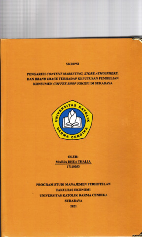 Thalia, Maria Dhea (2021) Pengaruh Content Marketing,Store Atmosphere, dan Brand Image Terhadap Keputusan Pembelian Konsumen Coffee Shop Jokopi di SUrabaya. Undergraduate thesis, Universitas Katolik Darma Cendika Fakultas Ekonomi.