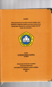 Natasya, Nathania Prilly (2021) Pengaruh Kualitas pelayanan,Harga,Dan Promosi Terhadap Kepuasan dan Loyalitas Konsumen Pengguna Aplikasi Ojek Online Grab di Surabaya. Undergraduate thesis, Universitas Katolik Darma Cendika Fakultas Ekonomi.