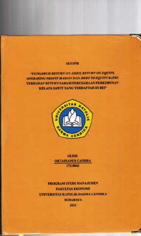 Candra, Oktafianus (2021) Pengaruh Return on Asset, Return on Equity, Operating Profit Marhin dan Debt to Equity ratio Terhadap retun Saham Perusahaan Perkebunan Kelapa SAwit yang Terdaftar di Beli. Undergraduate thesis, Universitas Katolik Darma Cendika Fakultas Ekonomi.