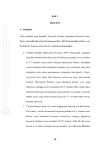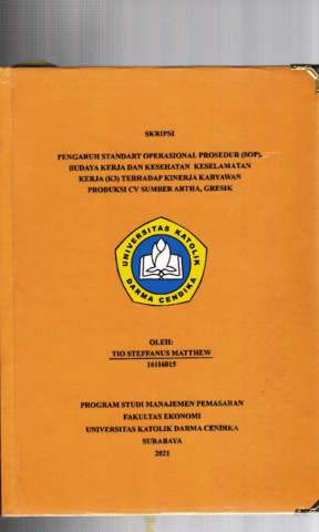 Matthew, Tio Steffanus (2021) Pengaruh Standart Operasioanl Prosedur (SOP), Budaya Kerja dan Kesehatan Keselamatan Kerja (K3) Terhadap Kinerja Karyawan produksi CV Sumber Artha,gresik. Undergraduate thesis, Universitas Katolik Darma Cendika Fakultas Ekonomi.