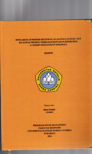 Yeremia, Rener (2021) Pengaruh Atmosfer Restoran,Kualitas Layanan dan Kualitas produk terhadap KepuasanKonsumen La Pasion Restaurant Surabaya. Undergraduate thesis, Universitas Katolik Darma Cendika Fakultas Ekonomi.