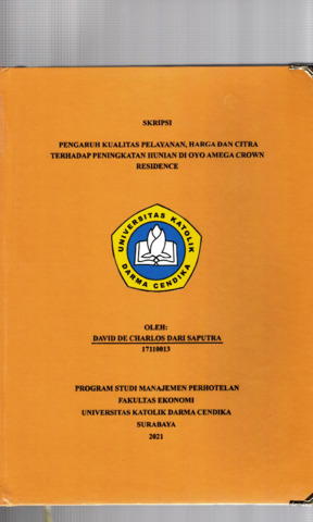 Saputra, David De Charlos Dari (2021) Pengaruh Kualitas Pelayanan,Harga dan Citra Terhadap Peningkatan unian di OYO Amega Crown Residence. Undergraduate thesis, Universitas Katolik Darma Cendika Fakultas Ekonomi.