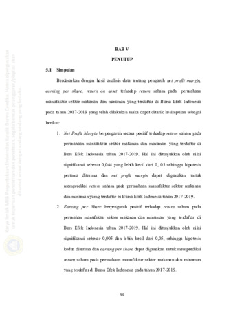 Pengaruh Net Profit Margins, Earning Per Share, Return On Asset Terhadap Return Saham (Pada Perusahaan Manufaktur Sektor Makanan dan Minuman yang Terdafrtar di Bursa Efek Indonesia Tahun 2017-2019)