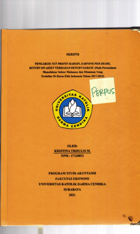 Trisulis M., Kristina (2021) Pengaruh Net Profit Margins, Earning Per Share, Return On Asset Terhadap Return Saham (Pada Perusahaan Manufaktur Sektor Makanan dan Minuman yang Terdafrtar di Bursa Efek Indonesia Tahun 2017-2019). Undergraduate thesis, Universitas Katolik Darma Cendika Fakultas Ekonomi.