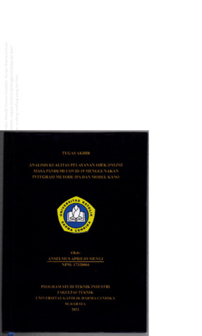 Mengi, Anselmus Aprilio (2021) Analisis Kualitas Pelayanan Ojek Online Masa Pandemi Covi-19 Menggunakan Inegrasi Metode IPA dan Model Kano. Undergraduate thesis, Universitas Katolik Darma Cendika Fakultas Teknik.