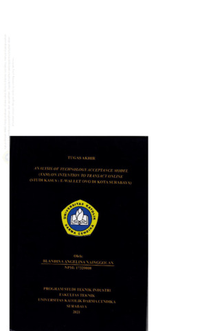 Nainggolan, Blandina Angelina (2021) Analysis of Technology Acceptance Model (TAM) On Intention to Transact Online (Studi Kasus : E-Wallet Ovo di Kota Surabaya). Undergraduate thesis, Universitas Katolik Darma Cendika Fakultas Teknik.