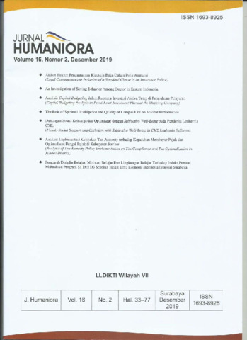 Sari, Retno Dewi Pulung and Atjengbharata, Andreas L. (2019) Akibat Hukum Pencantuman Klausula Baku Dalam Polis Asuransi. Humaniora, 16 (2). pp. 33-36. ISSN 1693-8925