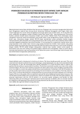 - PENINGKATAN KUALITAS PRODUKSI KAYU DOWEL SAPU DENGAN PENDEKATAN METODE SEVEN TOOLS DAN 5W + 1H. (deposited 16 Jan 2023 09:13) [Currently Displayed]