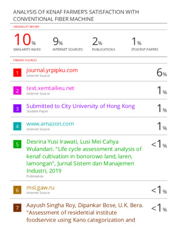 HASIL SIMILARITY_ANALYSIS OF KENAF FARMER’S SATISFACTION WITH CONVENTIONAL FIBER MACHINE.pdf Download (1MB) | Preview |