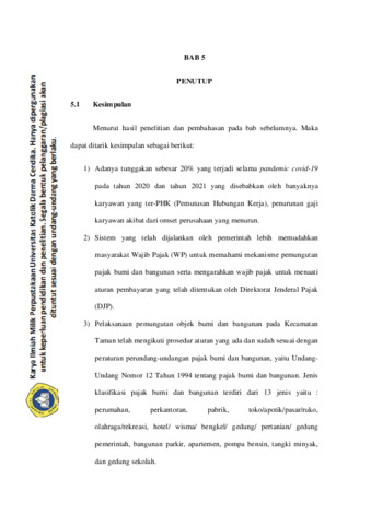 | Uncontrolled Keywords: | Efektivitas Penerimaan, Pajak Bumi dan Bangunan, Pandemi Covid-19 |