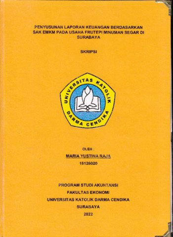 Raja, Maria Yustina (2022) Penyusunan Laporan Keuangan Berdasarkan SAK EMKM pada Usaha Frutepi Minuman Segar di Surabaya. Undergraduate thesis, Universitas Katolik Darma Cendika.