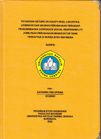 Aprina, Katarina Dwi (2022) Pengaruh Return on Equity (ROE), Likuiditas, Leverage dan Ukuran Perusahaan Terhadap Pengungkapan Corporate Social Responsibility (CSR) pada Perusahaan Manufaktur yang Terhadap di Bursa Efek Indonesia. Undergraduate thesis, Universitas Katolik Darma Cendika.