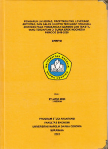 Dewi, Sylviana (2022) Pengaruh Likuiditas, Profitabilitas, Leverage, Aktivitas, Sales Growth terhadap Finansial Distress pada Perusahaan Garmen dan Tekstil yang Terdaftar di Bursa Efek Indonesia Periode 2018-2020. Undergraduate thesis, Universitas Katolik Darma Cendika.
