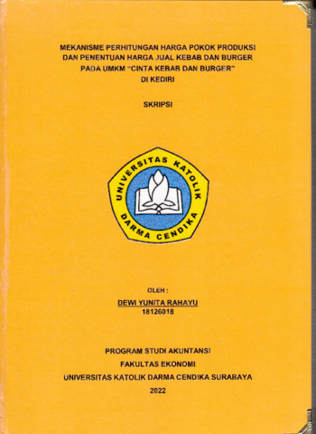 Rahayu, Dwi Yunita (2022) Mekanisme Perhitungan Harga Pokok Produksi dan Penentuan Harga Jual Kebab dan Burger pada UMKM "Cinta Kebab dan Burger" di Kediri. Undergraduate thesis, Universitas Katolik Darma Cendika.