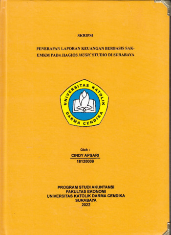 Apsari, Cindy (2022) Penerapan Laporan Keuangan Berbasis SAK-EMKM pada Hagios Music Studio di Surabaya. Undergraduate thesis, Universitas Katolik Darma Cendika.