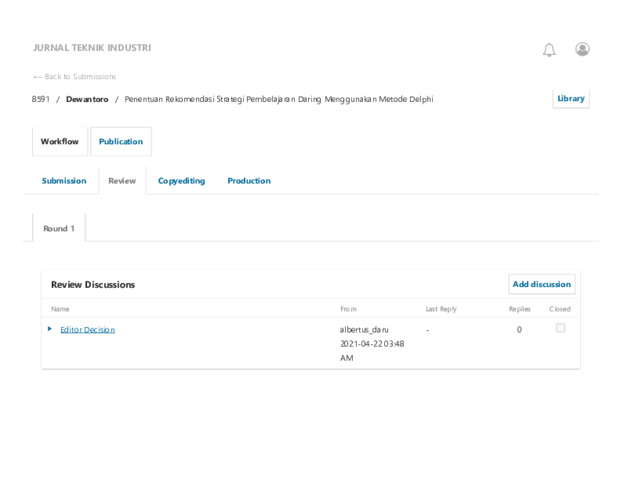 Dewantoro, Albertus Daru (2021) Penentuan Rekomendasi Strategi Pembelajaran Daring Menggunakan Metode Delphi. Jurnal Teknik Industri Universitas Tri Sakti, 11 (1). pp. 23-29. ISSN 2622-5131