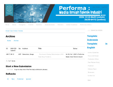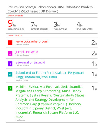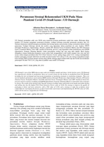 Dewantoro, Albertus Daru and Saogo, Aschensio (2021) Perumusan Strategi Rekomendasi UKM Pada Masa Pandemi Covid-19 (Studi kasus : UD Darmaji). PERFORMA: MEDIA ILMIAH TEKNIK INDUSTRI, 20 (1). pp. 7-13. ISSN 2620-6412