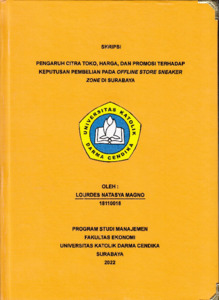 Magno, Lourdes Natasya (2022) Pengaruh Citra Toko,Harga,dan Promosi terhadap Keputusan Pembelian pada Offline Store Sneaker Zone di Surabaya. Undergraduate thesis, Universitas Katolik Darma Cendika Fakultas Ekonomi.