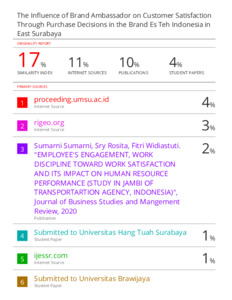 HASIL SIMILARITY-THE INFLUENCE OF BRAND AMBASSADOR ON CUSTOMER SATISFACTION.pdf Download (1MB) | Preview |
