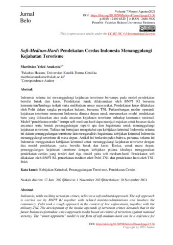 Anakotta, Marthsian Yeksi (2021) Soft-Medium-Hard: Pendekatan Cerdas Indonesia Menanggulangi Kejahatan Terorisme. JURNAL BELO, 7 (1). pp. 15-36. ISSN P: 2460-6820, E: 2686-5920