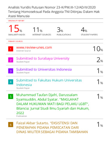 Hasil Similarity_Analisis Yuridis Putusan Nomor 23-K_PM.III-12_AD_II_2020 Tentang Homoseksual.pdf Download (1MB) | Preview |