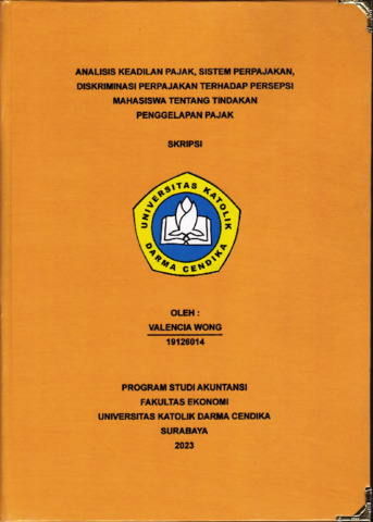 WONG, VALENCIA (2022) Analisis Keadilan Pajak, Sistem Perpajakan, Diskriminasi Perpajakan Terhadap Persepsi Mahasiswa Tentang Tindakan Penggelapan Pajak. Undergraduate thesis, Universitas Katolik Darma Cendika Fakultas Ekonomi.