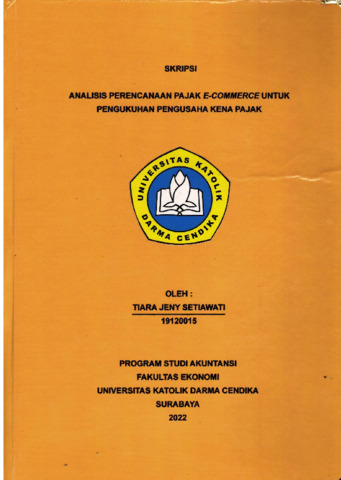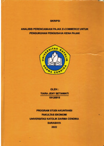 SETIAWATI, TIARA JENY (2022) Analisis Perencanaan Pajak E-Commerce Untuk Pengukuhan Pengusaha Kena Pajak (PKP) studi kasus pada Perusahaan Dagang Kebutuhan Pokok di Surabaya. Undergraduate thesis, Universitas Katolik Darma Cendika Fakultas Ekonomi.