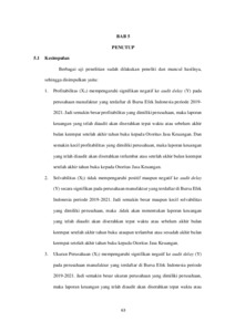 terhadap audit delay pada perusahaan manufaktur yang terdaftar di Bursa Efek Indonesia periode 2019-2021 karena nilai signifikansi 0,53 > 0,05, (3) Ukuran perusahaan berpengaruh negatif dan signifikan terhadap audit delay pada