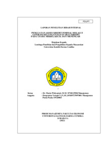 Widyastuti, Maria and Ferdinand, Deograsias Yoseph Yustinianus (2022) PENGUATAN AKSES KREDIT FORMAL MELALUI LITERASI KEUANGAN DAN SYARAT KREDIT PADA USAHA MIKRO, KECIL DAN MENENGAH. Project Report. Fakultas Ekonomi Universitas Katolik Darma Cendika, Surabaya. (Unpublished)