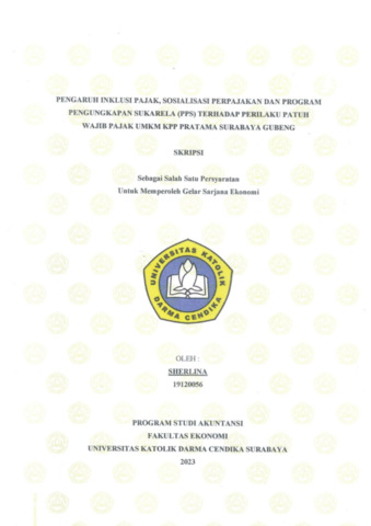 Sherlina, Sherlina (2023) Pengaruh Inklusi Pajak, Sosialisasi Perpajakan dan Program Pengungkapan Sukarela (PPS) Terhadap Perilaku Patuh Wajib Pajak UMKM KPP Pratama Surabaya Gubeng. Undergraduate thesis, Universitas Katolik Darma Cendika Fakultas Ekonomi.