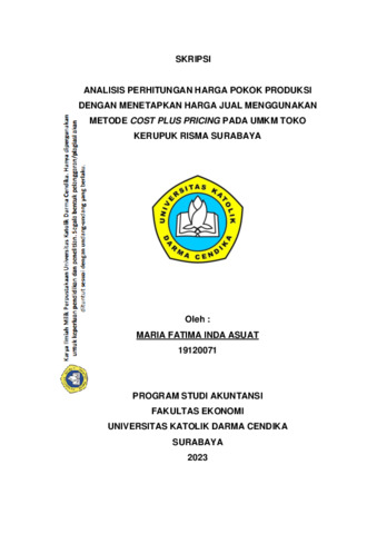 ASUAT, MARIA FATIMA INDA (2023) Analisis Perhitungan Harga Pokok Produksi Dengan Menetapkan Harga Jual Menggunakan Metode Cost Plus Pricing Pada UMKM Toko Kerupuk Risma Surabaya. Undergraduate thesis, Universitas Katolik Darma Cendika Fakultas Ekonomi.