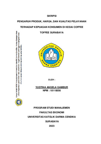 GAMBUR, YUSTINA ANGELA (2023) Pengaruh Produk, Harga Dan Kualitas Pelayanan Terhadap Kepuasan Konsumen Menginap Di Kedai Coffee Toffee Surabaya. Undergraduate thesis, Universitas Katolik Darma Cendika Fakultas Ekonomi.
