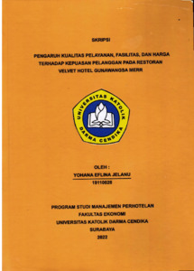 JELANU, YOHANA EFLINA (2023) Pengaruh Kualitas Pelayanan, Fasilitas, dan Harga Terhadap Kepuasan Pelanggan di Restoran Velvet Hotel Gunawangsa Merr. Undergraduate thesis, Universitas Katolik Darma Cendika Fakultas Ekonomi.