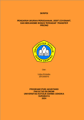 Kristalia, Lidya (2024) PENGARUH UKURAN PERUSAHAAN, DEBT COVENANT, DAN MEKANISME BONUS TERHADAP TRANSFER PRICING. Undergraduate thesis, Universitas Katolik Darma Cendika Fakultas Ekonomi.