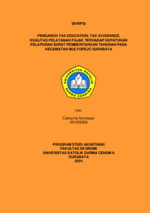 Novitasari, Catharina (2024) PENGARUH TAX EDUCATION, TAX AVOIDANCE, KUALITAS PELAYANAN PAJAK TERHADAP KEPATUHAN PELAPORAN SURAT PEMBERITAHUAN TAHUNAN PADA KECAMATAN MULYOREJO SURABAYA. Undergraduate thesis, Universitas Katolik Darma Cendika Fakultas Ekonomi.
