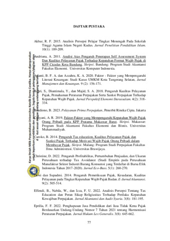 Kata kunci: Tax Education, Tax Avoidance, Kualitas Pelayanan Pajak, Kepatuhan Pelaporan Surat Pemberitahuan Tahunan.