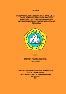 Effendi, Stefany Tamarina (2024) PENGARUH KUALITAS PELAYANAN, HARGA, DAN WORD OF MOUTH TERHADAP KEPUTUSAN PEMBELIAN LAPTOP DI JUARA COMPUTER INTERNATIONAL TRADE CENTER MEGA GROSIR SURABAYA. Undergraduate thesis, Universitas Katolik Darma Cendika Fakultas Ekonomi.