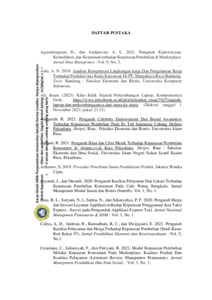 statement items are declared valid. Apart from the validity test, we also use a reliability test, where all variables are declared reliable because they have Cronbach's alpha ≥ 0.60. The results of multiple linear regression are Y = - 0.542 + 0.252 X1 + 0.368 X2 + 0.333 X3. The determinant coefficient result is adjusted R square of 76.9%, meaning that all independent variables have a strong contribution to the dependent variable. The results of the service quality t test obtained a calculated t value of 2.825 > t table 1.99394 with a significance obtained of 0.006 < 0.05, meaning that it rejected H0 and accepted H1 which stated that service quality (X1) had a significant effect on purchasing decisions (Y); the price t test obtained a