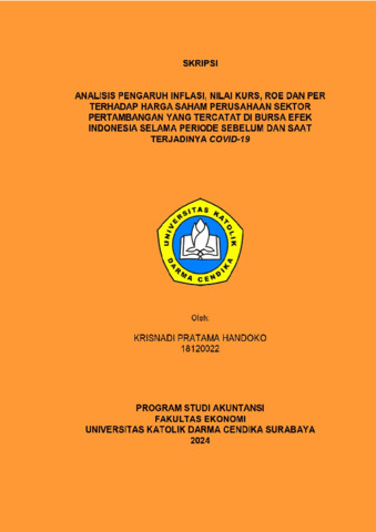 Handoko, Krisnadi Pratama (2024) Analisis Pengaruh Inflasi, Nilai Kurs, ROE dan PER terhadap Harga Saham Perusahaan Sektor Pertambangan Yang Tercatat di Bursa Efek Indonesia Selama Periode Sebelum dan Saat Terjadinya Covid-19. Undergraduate thesis, Universitas Katolik Darma Cendika Fakultas Ekonomi.