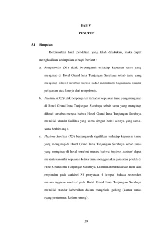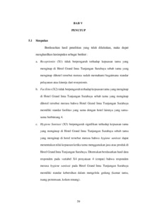 PENGARUH RECEPTIONIST, FACILITIES, HYGIENE SANITASI, DAN WORD OF MOUTH TERHADAP KEPUASAN TAMU YANG MENGINAP DI HOTEL GRAND INNA TUNJUNGAN SURABAYA