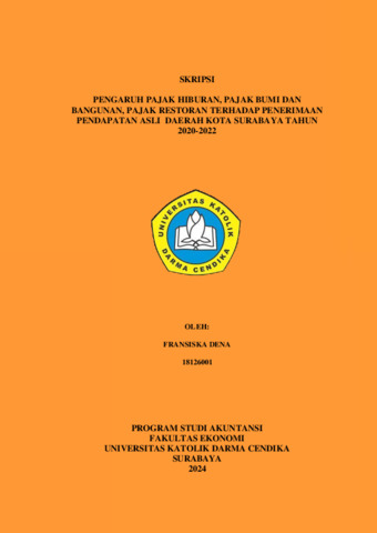 DENA, FRANSISKA (2024) PENGARUH PAJAK HIBURAN, PAJAK BUMI DAN BANGUNAN, PAJAK RESTORAN TERHADAP PENERIMAAN PENDAPATAN ASLI DAERAH KOTA SURABAYA TAHUN 2020-2022. Undergraduate thesis, Universitas Katolik Darma Cendika Fakultas Ekonomi.