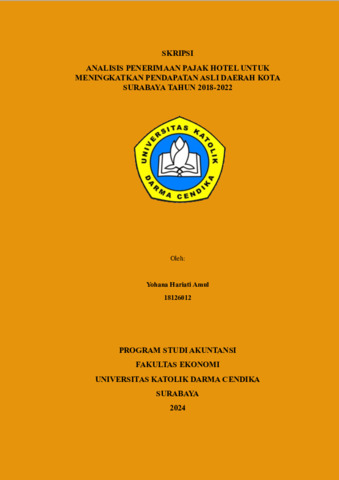 AMUL, YOHANA HARIATI (2024) ANALISIS PENERIMAAN PAJAK HOTEL UNTUK MENINGKATKAN PENDAPATAN ASLI DAERAH KOTA SURABAYA TAHUN 2018-2022. Undergraduate thesis, Universitas Katolik Darma Cendika Fakultas Ekonomi.